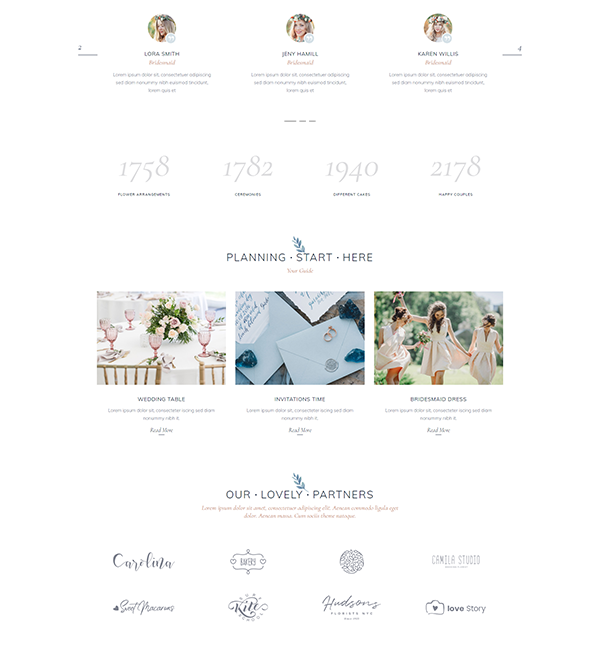 The Aisle comes with multiple predesigned homepages dedicated solely to creating invitations for your special day. Customize each page as per your style, add a timeline, the RSVP form, share your love story, and include the countdown to the big event.